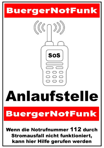 ausdruckbares Schild gut sichtbar auf. Mit dem Schild werden Sie zu einer Buergernotfunk-Anlaufstelle.
